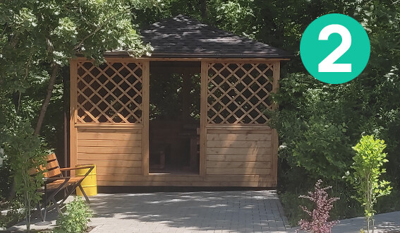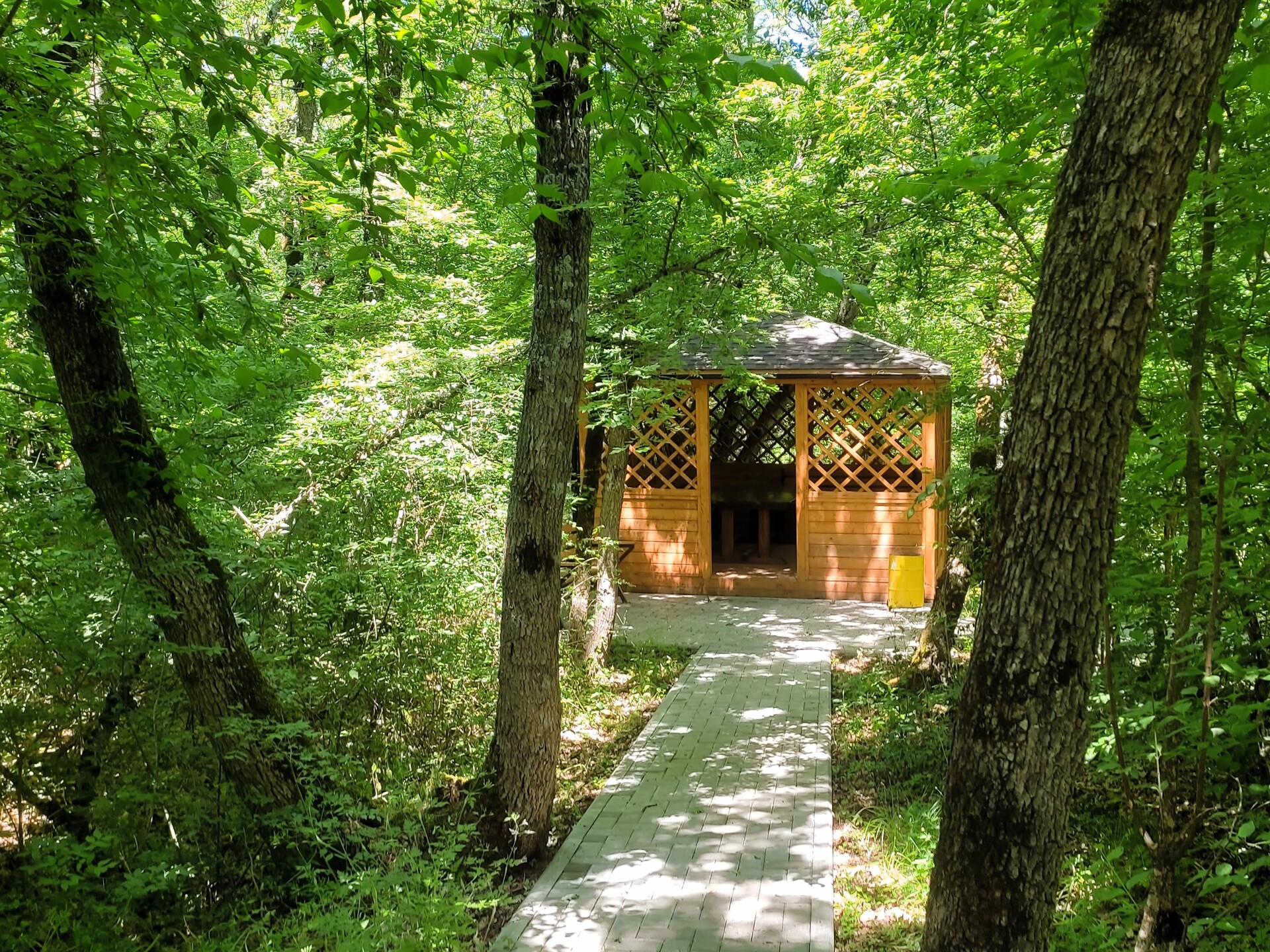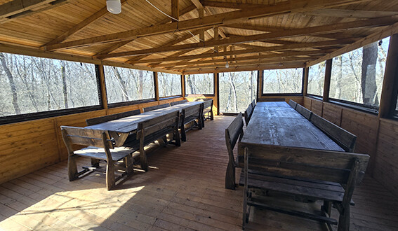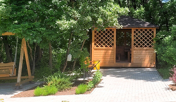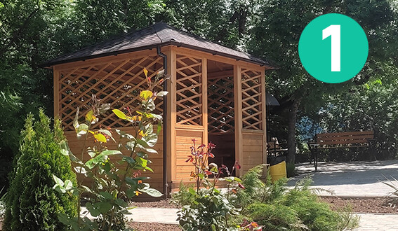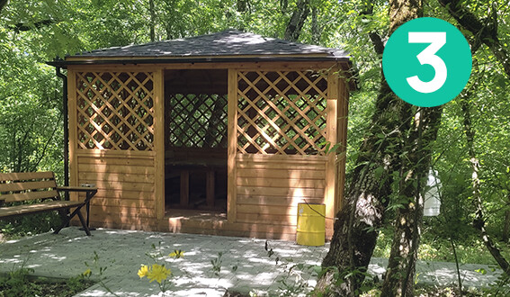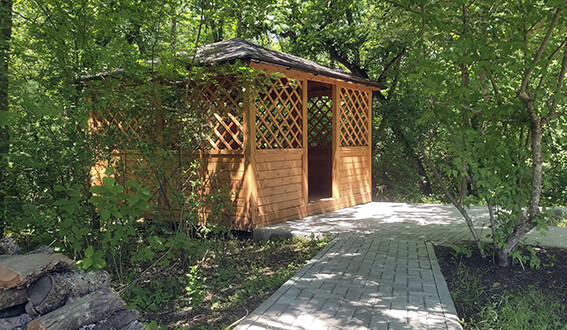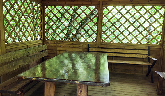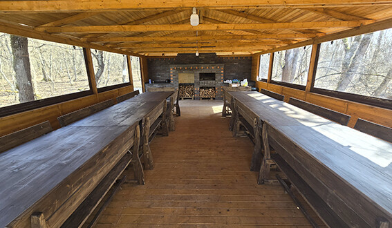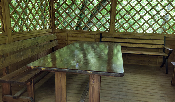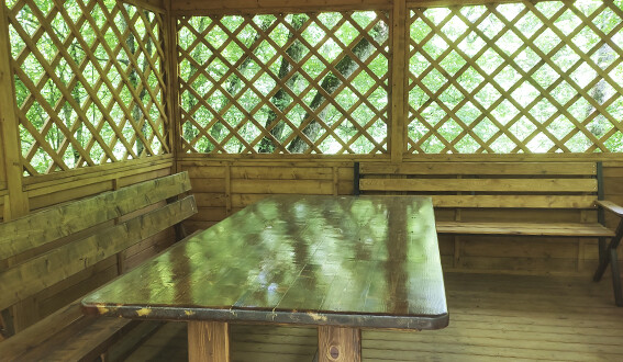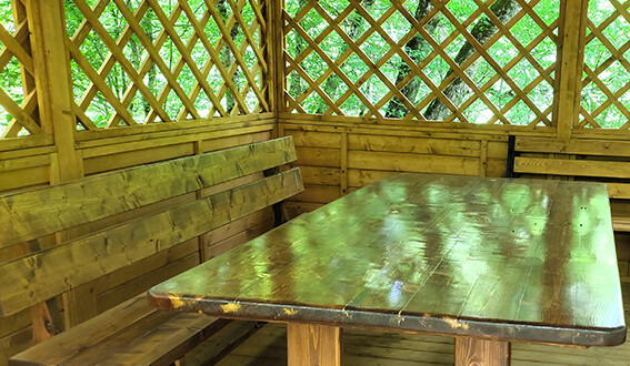 Уютная лесная деревянная беседка. Красивая деревянная мебель внутри беседки, создает атмосферу природы и теплоты, позволит вам удобно расположиться для отдыха или празднования. Беседка оборудована освещением, что позволяет создать приятную атмосферу в вечернее время, а также оснащена розетками для удобства подключения бытовых приборов или зарядки мобильных устройств . Для приятного ужина или вечеринки в беседке есть мангал, где можно приготовить вкуснейшие блюда на открытом воздухе. Стандартная вместимость до 30 человек. Больше по согласованию. Максимальная вместимость — 42 человека. За каждого дополнительного гостя сверх 30 человек взимается доплата — 300 рублей с человека.)